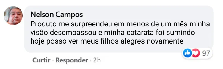 Eu tinha Catarata a 2 anos, não enxergava no olho direito, até que conheci o Chá Tailandês, confesso que sou muito incrédulo e não confiei que ia dar certo, mesmo assim eu fui, e o que posso dizer do resultado, hoje eu estou enxergando muito melhor, e meu médico disse que essa melhora é muito surpreendente.